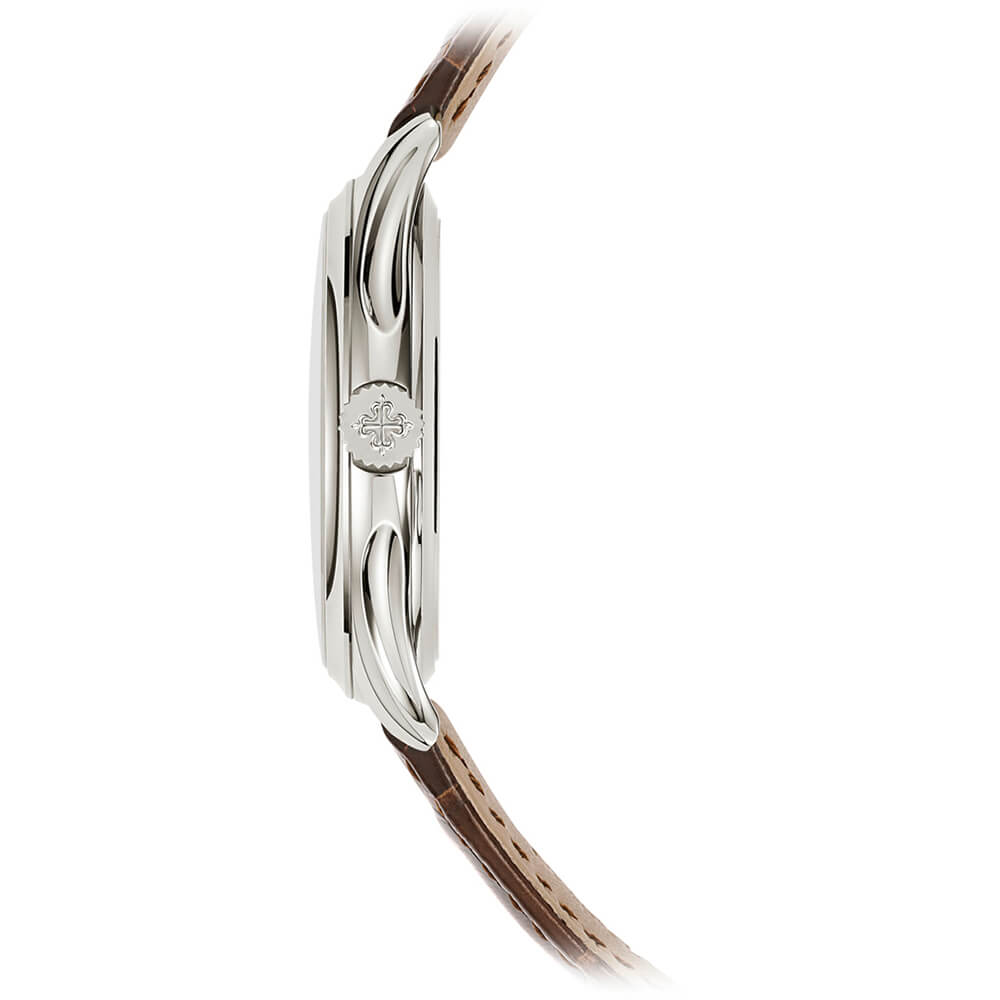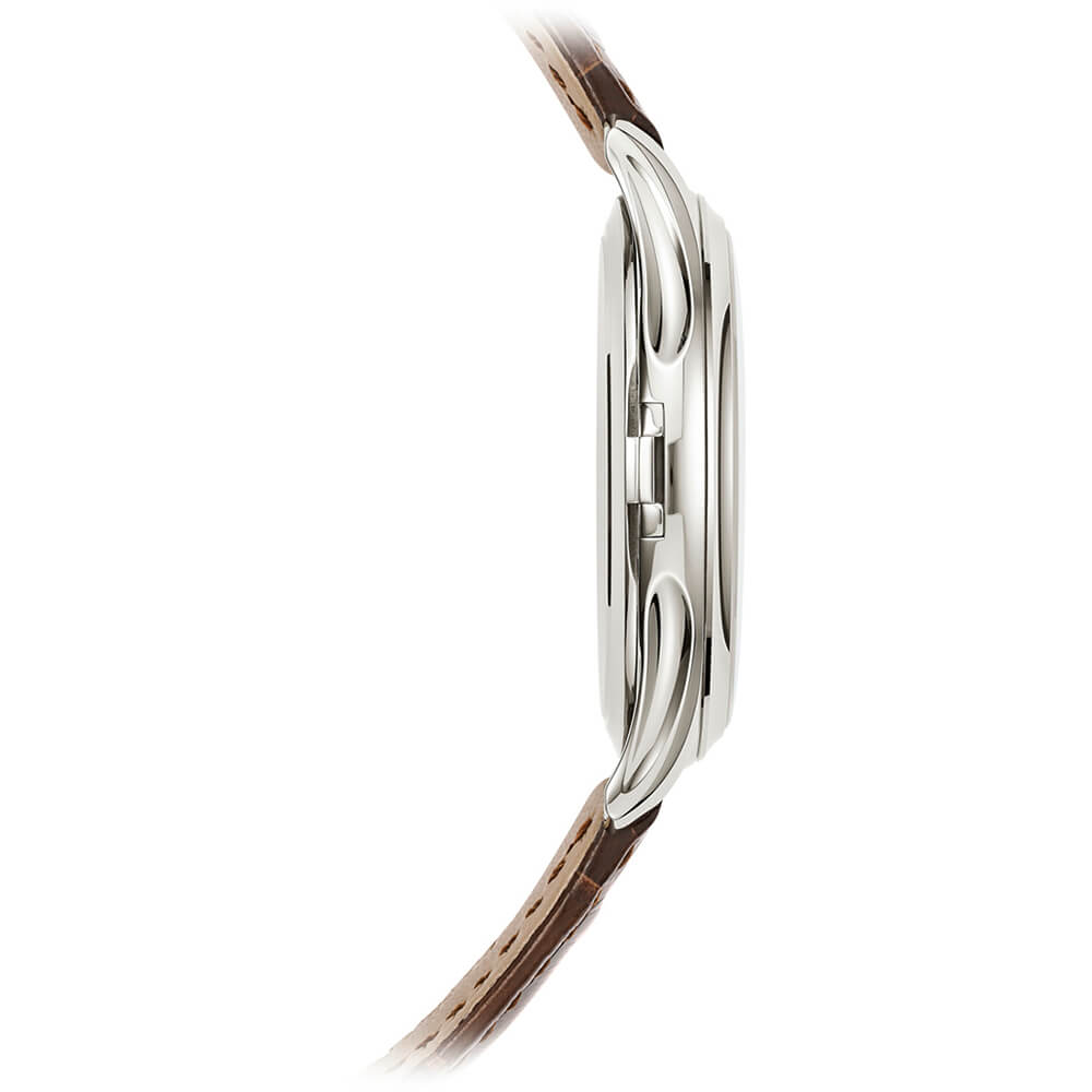 アリゲーター、ラージ・スクエア、ブリリアント・チョコレートブラウン ホワイトゴールド・ピンバックル