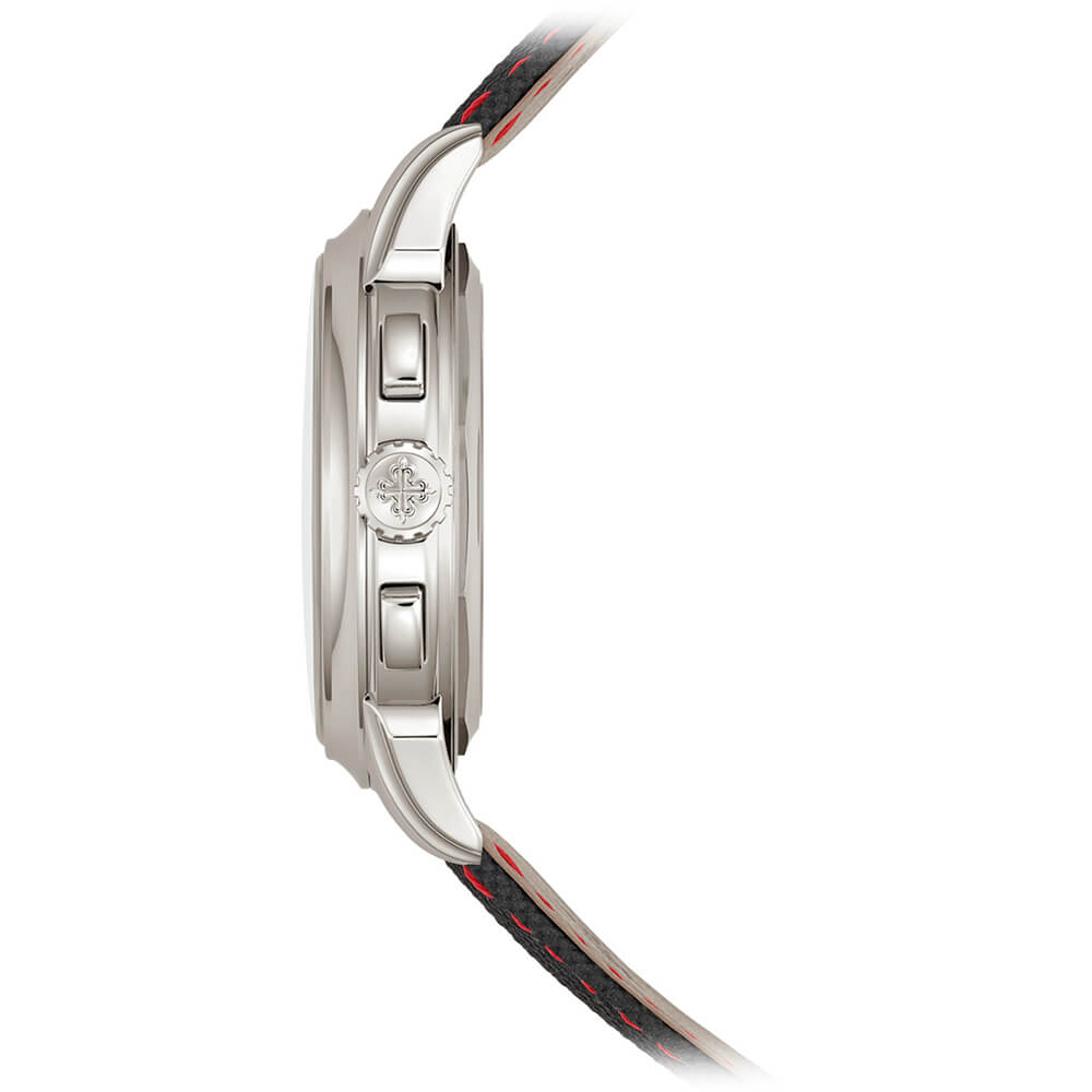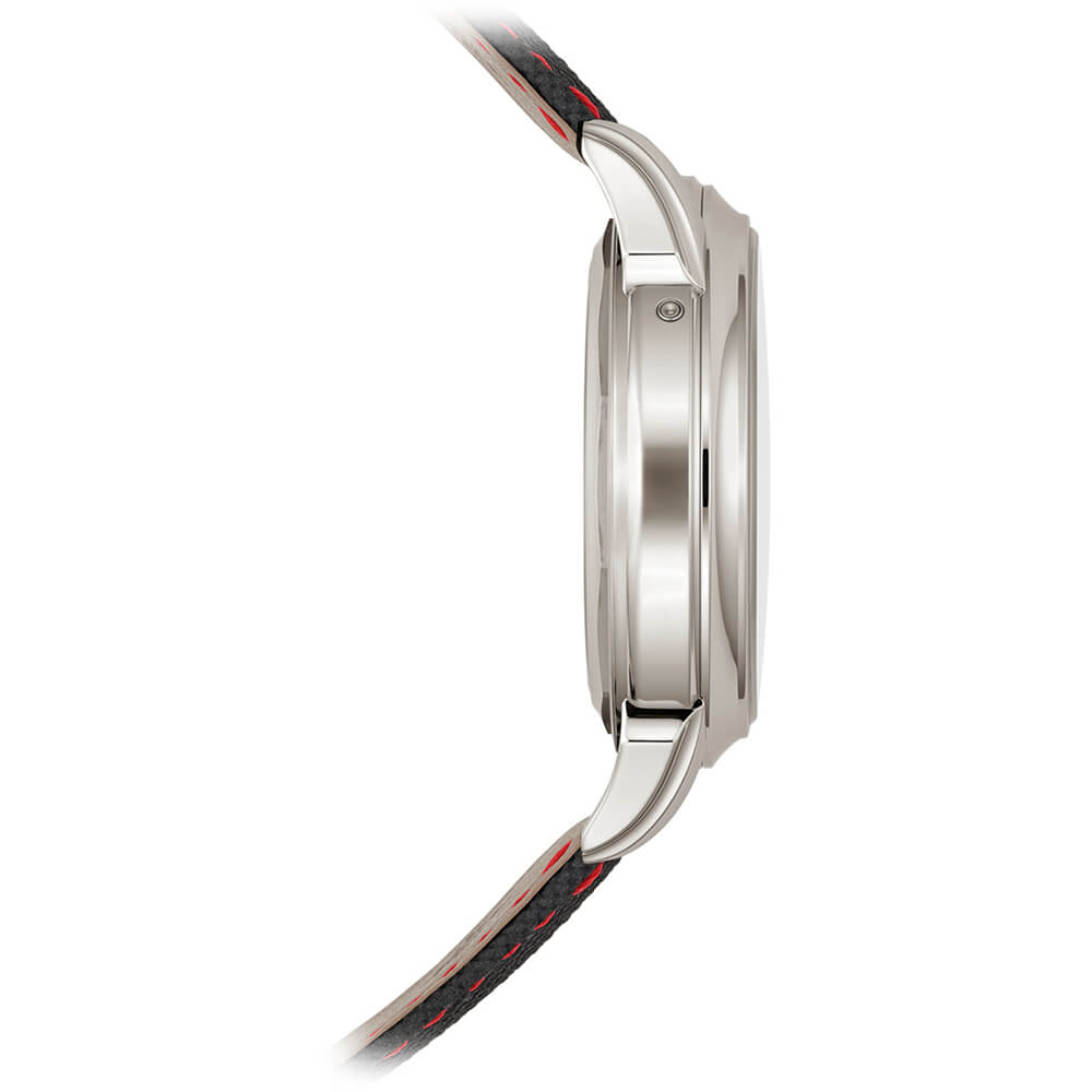 コンポジット素材、ファブリック柄、ブラック、レッド・ステッチ プラチナ折り畳み式バックル